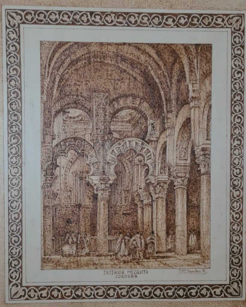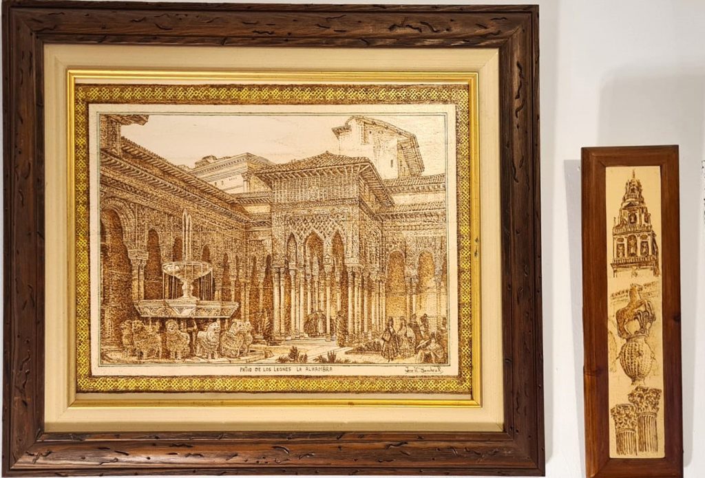 Todos los pirograbados expuestos aqui son originales , expresan el compromiso y el esfuerzo del artista con cordoba y sus origenes romanos y arabes .